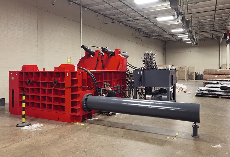 تحت قيادة النظام الهيدروليكي، يتم ضغط النفايات المعدنية إلى حزم معدنية مدمجة.